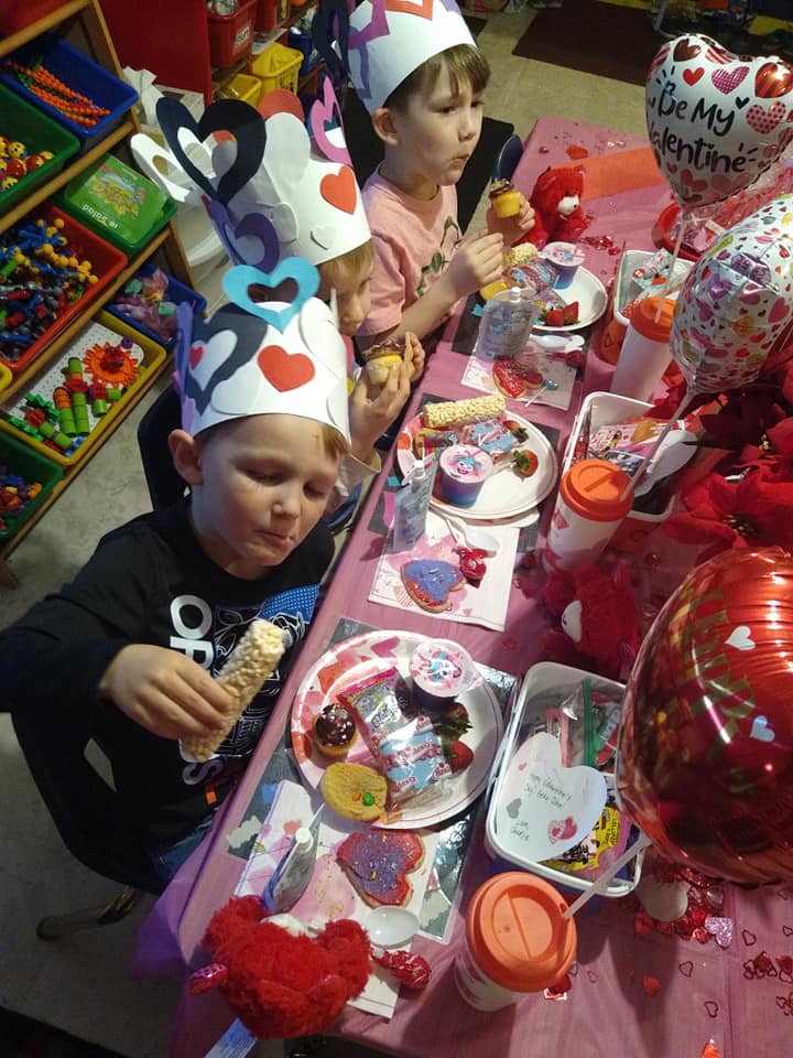 Once again we celebrated our pinkalicious affair by reading the stories: “Pinkalicious Flower Girl “ and “Valentine Cats”. Then we decorated heart cookies to win a Mailbox full of Treats. Then we played a riveting Valentine Match Game; earning a special Teddy Bear Friend! Afterward we sang “I Love You” with Barney and checked out our special valentines from our classmates. Then it was on to devouring sweet strawberries, sprinkled cupcakes from Upper Crust (Thank you Nikita!), Shopkin fruit snacks, m&m cookies, Troll Jell-O, and applesauce GO-GO Squeez drinks. And then we proceeded to enjoy watching a valentine movie: Madly Madagascar! Then we headed outside to play “Find the Valentine” To earn a Treat Bag! Thank you to all the kids and their parents, the Valentines were spectacular this year!