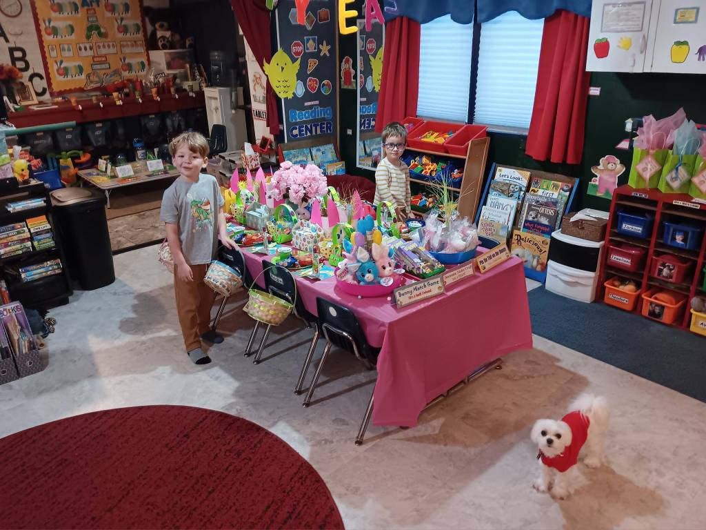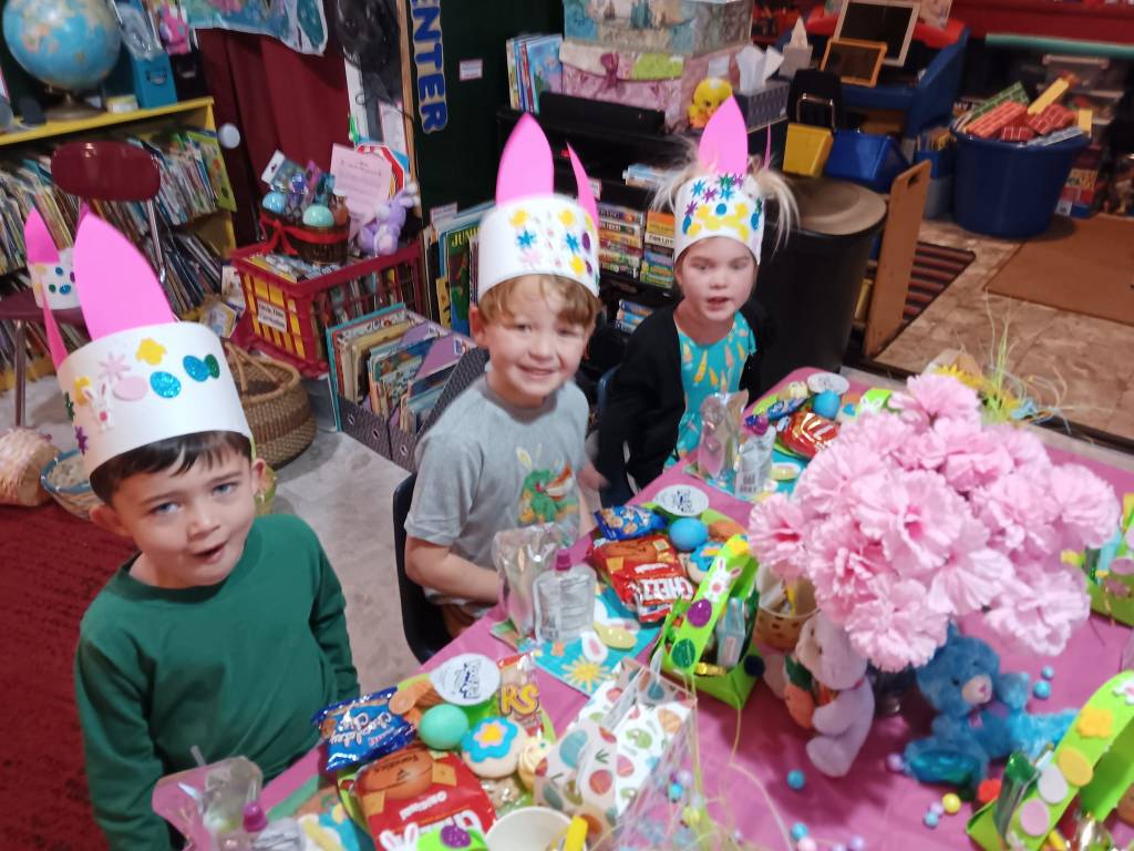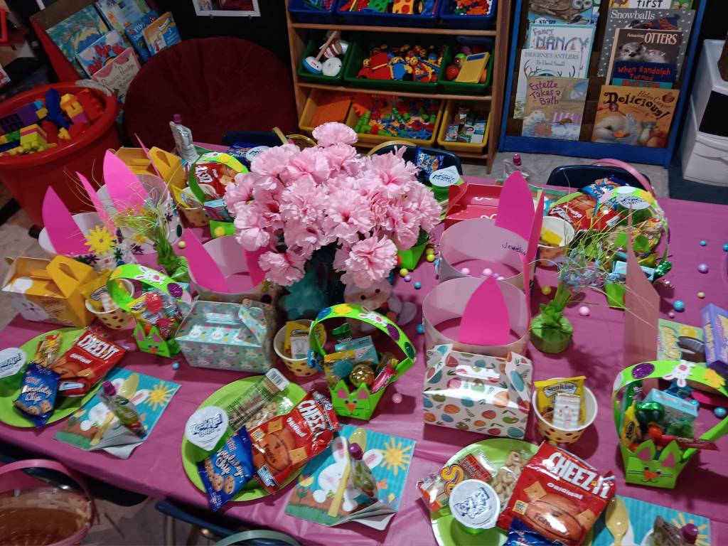 The Easter Bunny was HERE! He not only filled our Easter Baskets full of fun treats, but he also hid candy-filled eggs for us to search for! We created an adorable “Easter Craft” engaged in a romping good time playing Bunny Bingo and Bunny Match, and performing the Bunny Hop Dance all the way to play Pin the Tail on the Bunny where we got to win Treats and Toys. And then we did the movement activity I am Bunny Pink Ears earning a Chocolate Bunny Treat. Then it was on to our special snack feast of baby carrots, fruit snacks, Easter cupcakes, sprinkled cookies, Jell-O, pink lemonade and our own Easter Eggs that we decorated!. And then we went on our Easter Egg Hunt! What a fabulous party.