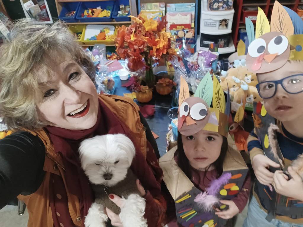 Happy Turkey Day, little turkeys! Our little turkeys had ourselves a gobble of a good time. We created little Cookie Turkeys: using Oreo cookies, Rollo’s, malt balls, and candy corn for our edible decoration…and created pinecone turkey centerpieces to take home. For our events we played TURKEY TOSS, winning a SOFT FRIEND, and THANKSGIVING BINGO, winning a treat bag. And then we sat down to savor a yummy feast. And then, we got to relax our little turkey bellies by watching A Charlie Brown’s Thanksgiving. This year I am super thankful to all of my extraordinarily bright and kind-hearted students, and their incredibly generous parents—who have supported me and helped with donations, sending lunches, and paying tuition early (a huuuuge help). I am unbelievably grateful and so thankful to have such wonderful and loving parents. I couldn’t be here without you!