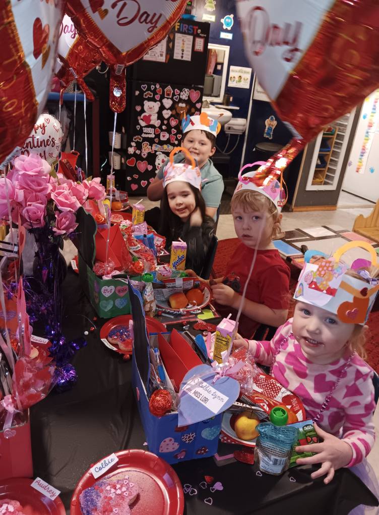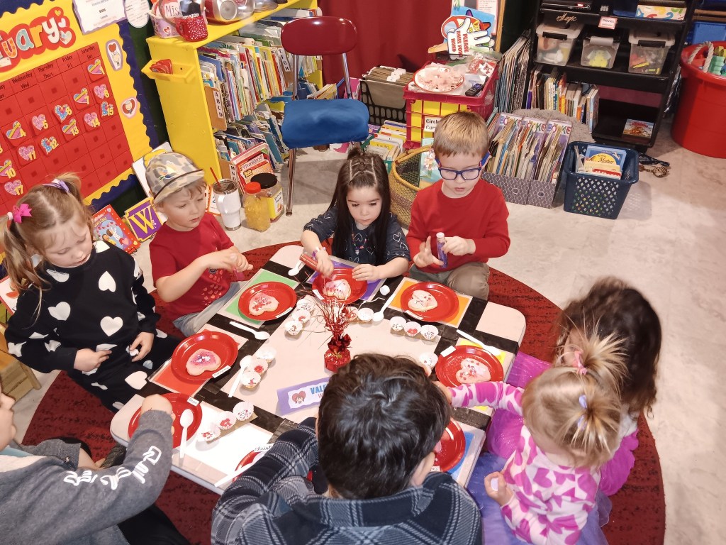 The Teddy Bear class enjoyed the best Valentine’s Day party, ever! The LOVE was everywhere! We started our party by painting a WOODEN TEDDY BEAR CRAFT and DECORATING A HEART COOKIE to win a Treat Bag. Then we played a riveting VALENTINE BINGO and won a Soft Monkey Friend, and then played a HEART MATCH GAME and won a Box of Chocolates and more! Then we sang “I Love You” with Barney and checked out our special Valentines from our classmates. Then it was on to devouring a feast of Valentine’s snacks. And then we proceeded to enjoy watching a Valentine’s movie: Madly Madagascar! And to wind down the festivities, we read “Valentine Cats”. Thank you to all the kids and their parents, the Valentines were spectacular this year!