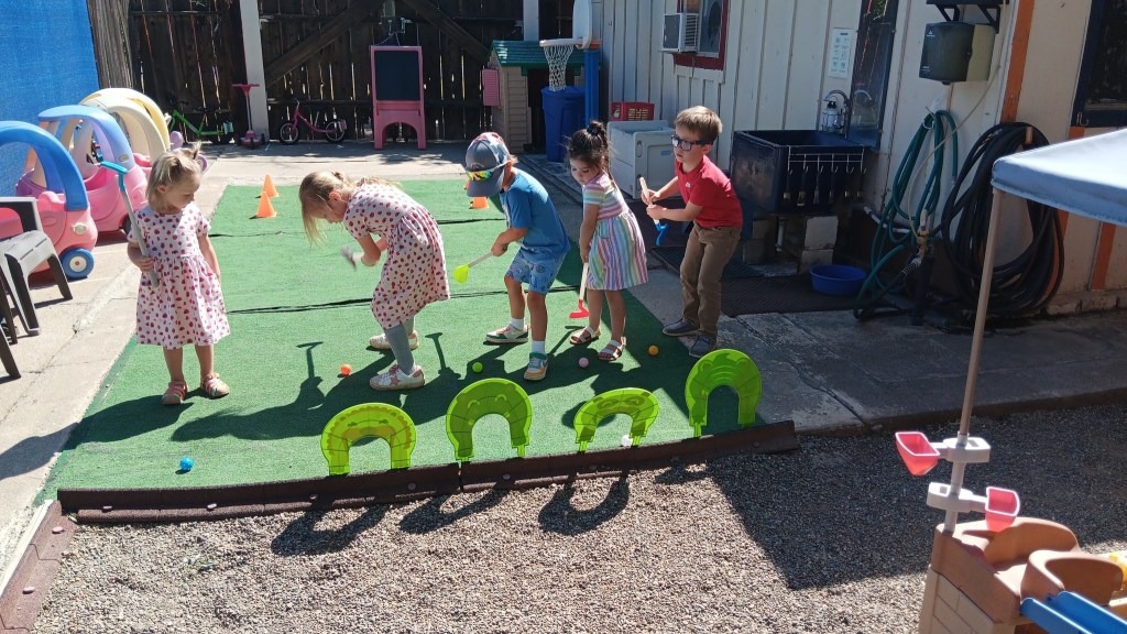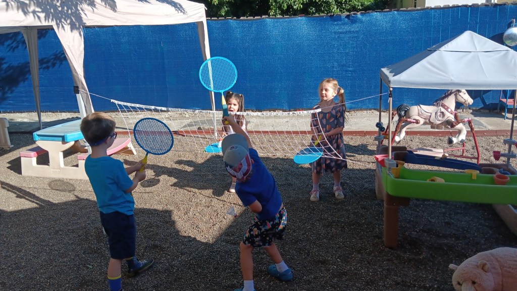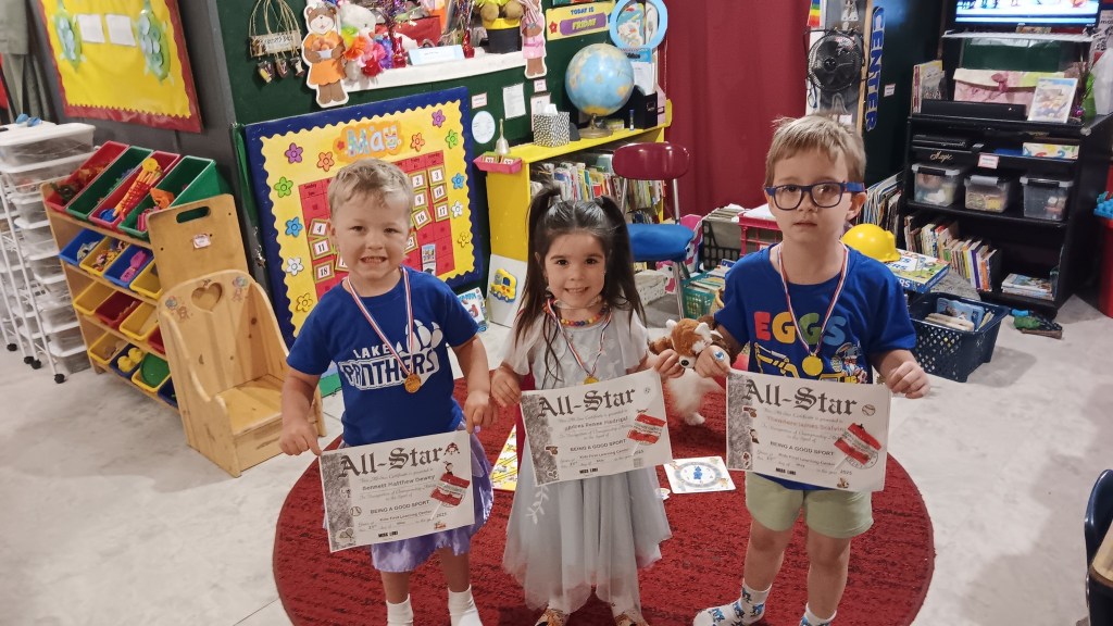 Our end of the school year HAWAIIAN LUAU for all children whoβve earned their βPin of Honorβ has been the best ever! With traditional Hawaiian music playing in the background, we began our festivities by playing with Beach Balls and Hula Hoops and then creating fabulous-looking Sun Visors earning a Treat Bag. And then we had the best time participating in the Limbo event and then performed a Hula Dancing routine weβd been practicing. After that, we performed our wonderful Humuhumunukunukuapua song about the famous Hawaiian fish wearing our Fish Hats earning a special PRIZE. This led us to our LUNCH feast of Mountain Mike’s Pizza, Submarine Sandwiches, Barbecue Chips, Pudding, Fruit Kabobs, Sprinkled Cupcakes, and Hawaiian Punch. After stuffing our faces, we relaxed and watched a fun ocean show. Aloha!