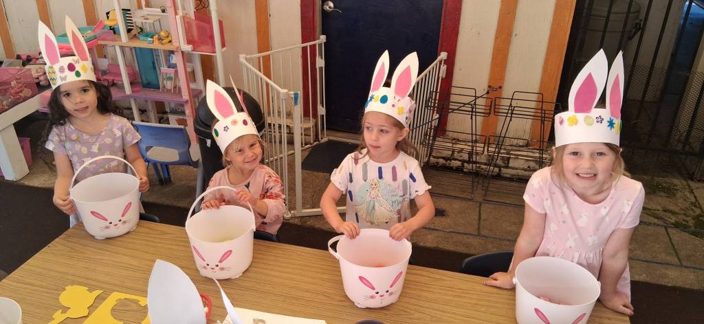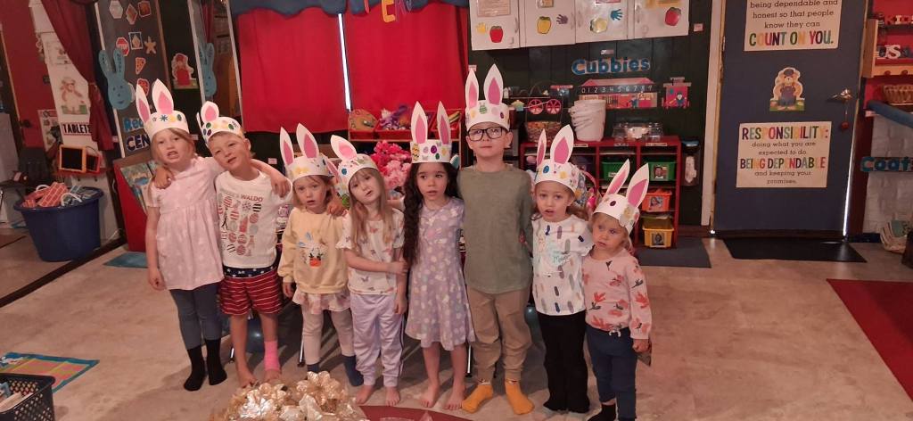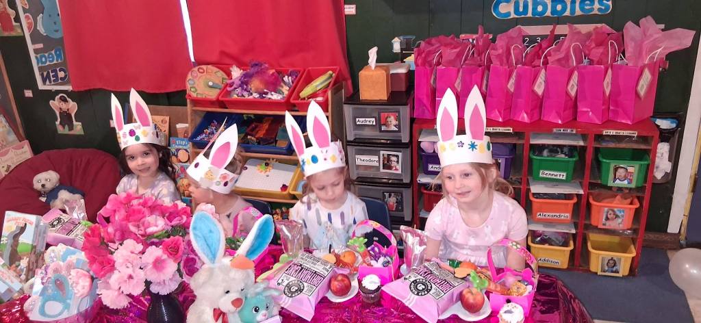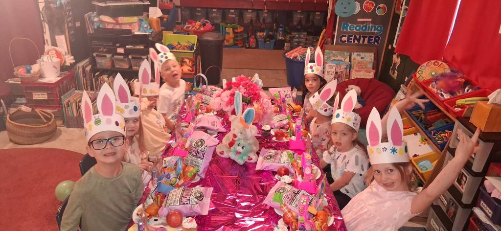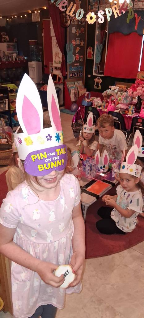The Easter Bunny was HERE! Yay! He not only filled our Easter Baskets full of fun treats, but he also hid candy-filled eggs for us to search for! We had the best party! We created an adorable “Easter Craft”, engaged in playing Bunny Match, and performed the Bunny Hop Dance all the way to play Pin the Tail on the Bunny, where we got to win Treats and Toys. Then we did the movement activity, I am Bunny Pink Ears, earning a Bunny Treat, and went on our Easter Egg Hunt! Then we got to enjoy our special snack feast of carrots, birthday cake flavored popcorn, Easter cupcakes, little chick cookies, Jell-O, lemonade, and our dyed Easter Eggs that we decorated! What a spectacular party.
